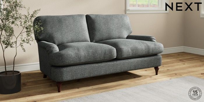 7.0.3 Buy Sadie Deep Relaxed Sit 2 Seater Sofa Cotswold Chenille Dark Grey High Slim Turned - Dark Brown from the Next UK online shop Click here to use our accessible website