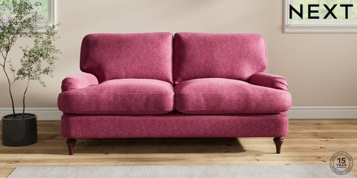 6.12.1 Buy Sadie Deep Relaxed Sit 2 Seater Sofa Cotswold Chenille Dark Raspberry Pink High Slim Turned - Dark Brown from the Next UK online shop Click here to use our accessible website
