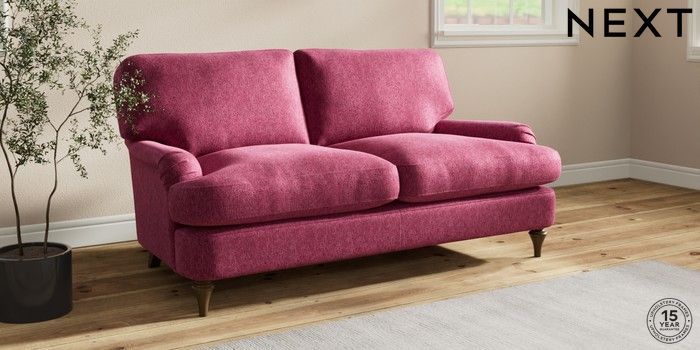 7.0.3 Buy Sadie Deep Relaxed Sit 2 Seater Sofa Cotswold Chenille Dark Raspberry Pink High Slim Turned - Mid from the Next UK online shop Click here to use our accessible website