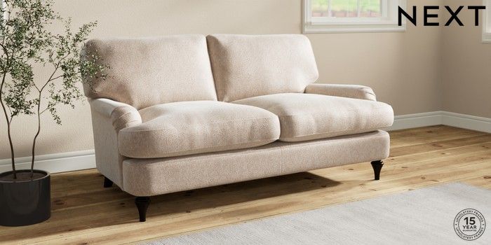 7.0.3 Buy Sadie Deep Relaxed Sit 2 Seater Sofa Cotswold Chenille Light Natural High Slim Turned - Dark from the Next UK online shop Click here to use our accessible website