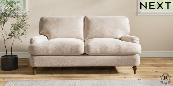 6.12.1 Buy Sadie Deep Relaxed Sit 2 Seater Sofa Cotswold Chenille Light Natural High Slim Turned - Mid from the Next UK online shop Click here to use our accessible website
