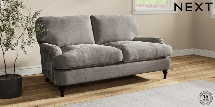 7.0.3 Buy Sadie Deep Relaxed Sit 2 Seater Sofa Distressed Velour French Grey High Slim Turned - Dark from the Next UK online shop Click here to use our accessible website