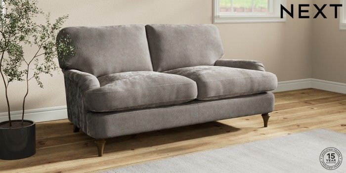 7.0.3 Buy Sadie Deep Relaxed Sit 2 Seater Sofa Distressed Velour French Grey High Slim Turned - Mid from the Next UK online shop Click here to use our accessible website
