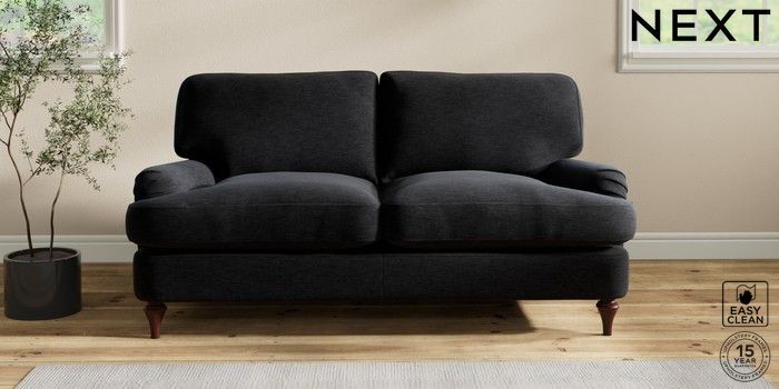 6.12.1 Buy Sadie Deep Relaxed Sit 2 Seater Sofa Fine Chenille Easy Clean Black High Slim Turned - Dark Brown from the Next UK online shop Click here to use our accessible website