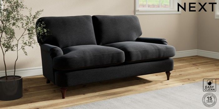 7.0.3 Buy Sadie Deep Relaxed Sit 2 Seater Sofa Fine Chenille Easy Clean Black High Slim Turned - Dark Brown from the Next UK online shop Click here to use our accessible website