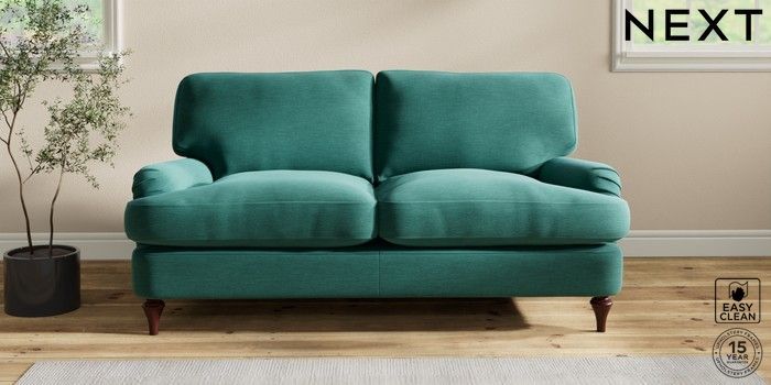 6.12.1 Buy Sadie Deep Relaxed Sit 2 Seater Sofa Fine Chenille Easy Clean Dark Juniper Green High Slim Turned - Dark Brown from the Next UK online shop Click here to use our accessible website