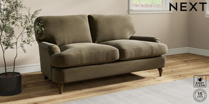 7.0.3 Buy Sadie Deep Relaxed Sit 2 Seater Sofa Fine Chenille Easy Clean Dark Moss Green High Slim Turned - Mid from the Next UK online shop Click here to use our accessible website