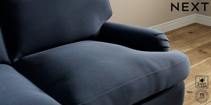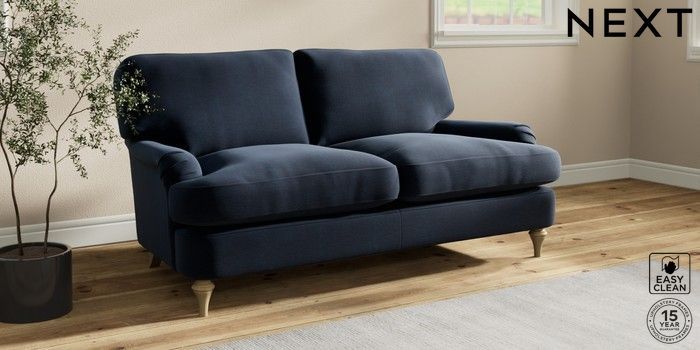 7.0.3 Buy Sadie Deep Relaxed Sit 2 Seater Sofa Fine Chenille Easy Clean Dark Navy Blue High Slim Turned - Light from the Next UK online shop Click here to use our accessible website