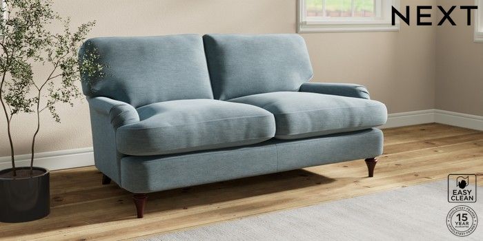 7.0.3 Buy Sadie Deep Relaxed Sit 2 Seater Sofa Fine Chenille Easy Clean Mid Blue High Slim Turned - Dark Brown from the Next UK online shop Click here to use our accessible website