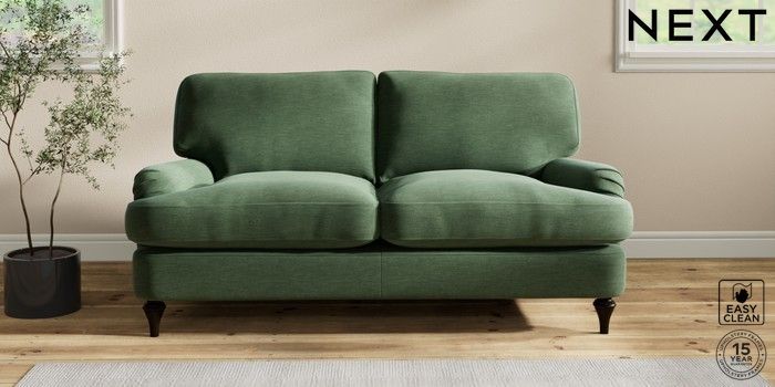 6.12.1 Buy Sadie Deep Relaxed Sit 2 Seater Sofa Fine Chenille Easy Clean Mid Khaki Green High Slim Turned - Dark from the Next UK online shop Click here to use our accessible website
