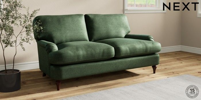 7.0.3 Buy Sadie Deep Relaxed Sit 2 Seater Sofa Luxe Chenille Dark Green High Slim Turned - Dark Brown from the Next UK online shop Click here to use our accessible website