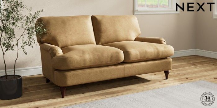 7.0.3 Buy Sadie Deep Relaxed Sit 2 Seater Sofa Luxe Chenille Honey Yellow High Slim Turned - Dark Brown from the Next UK online shop Click here to use our accessible website