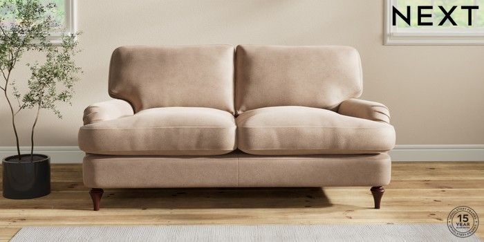 6.12.1 Buy Sadie Deep Relaxed Sit 2 Seater Sofa Luxe Chenille Mid Natural High Slim Turned - Dark Brown from the Next UK online shop Click here to use our accessible website