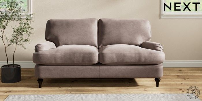 6.12.1 Buy Sadie Deep Relaxed Sit 2 Seater Sofa Luxe Chenille Mink Brown High Slim Turned - Dark from the Next UK online shop Click here to use our accessible website