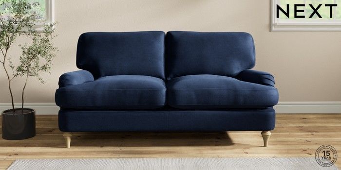 6.12.1 Buy Sadie Deep Relaxed Sit 2 Seater Sofa Luxe Chenille Navy Blue High Slim Turned - Light from the Next UK online shop Click here to use our accessible website