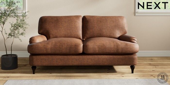 6.12.1 Buy Sadie Deep Relaxed Sit 2 Seater Sofa Monza Faux Leather Easy Clean Chestnut Brown High Slim Turned - Dark from the Next UK online shop Click here to use our accessible website