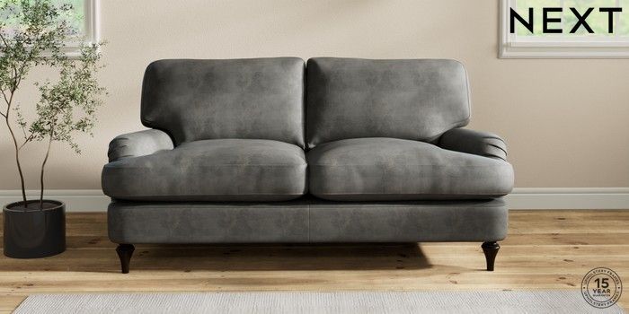 6.12.1 Buy Sadie Deep Relaxed Sit 2 Seater Sofa Monza Faux Leather Easy Clean Dark Grey High Slim Turned - Dark from the Next UK online shop Click here to use our accessible website