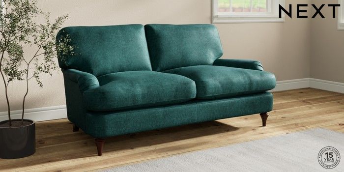 7.0.3 Buy Sadie Deep Relaxed Sit 2 Seater Sofa Plush Chenille Dark Teal Green High Slim Turned - Dark Brown from the Next UK online shop Click here to use our accessible website