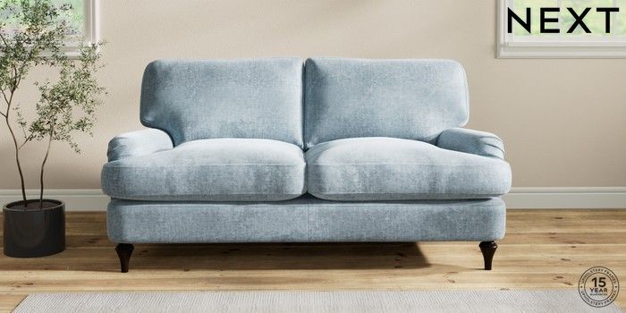 7.2.6 Buy Sadie Deep Relaxed Sit 2 Seater Sofa Plush Chenille Light Blue High Slim Turned - Dark from the Next UK online shop Click here to use our accessible website