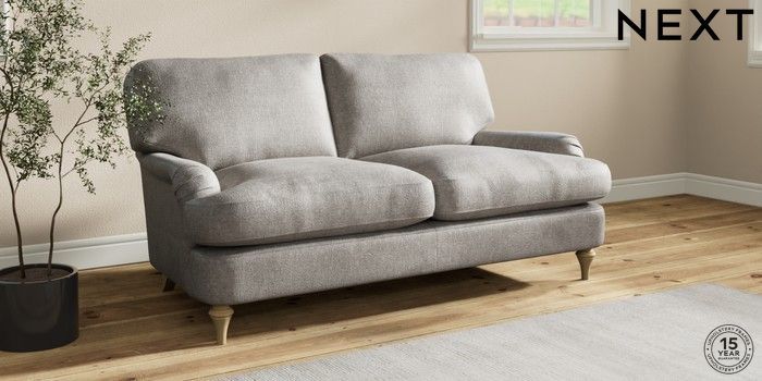 7.0.3 Buy Sadie Deep Relaxed Sit 2 Seater Sofa Plush Chenille Light Grey High Slim Turned - Light from the Next UK online shop Click here to use our accessible website