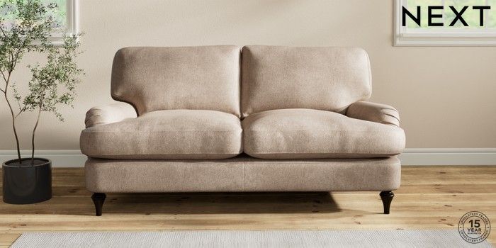 6.12.1 Buy Sadie Deep Relaxed Sit 2 Seater Sofa Plush Chenille Mid Natural High Slim Turned - Dark from the Next UK online shop Click here to use our accessible website