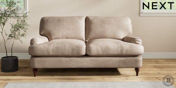 6.12.1 Buy Sadie Deep Relaxed Sit 2 Seater Sofa Plush Chenille Mid Natural High Slim Turned - Dark Brown from the Next UK online shop Click here to use our accessible website