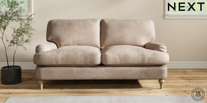 6.12.1 Buy Sadie Deep Relaxed Sit 2 Seater Sofa Plush Chenille Mid Natural High Slim Turned - Light from the Next UK online shop Click here to use our accessible website