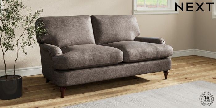 7.0.3 Buy Sadie Deep Relaxed Sit 2 Seater Sofa Plush Chenille Mink Brown High Slim Turned - Dark Brown from the Next UK online shop Click here to use our accessible website