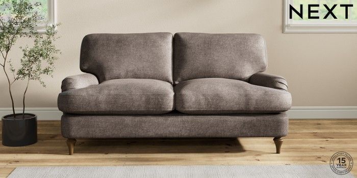 6.12.1 Buy Sadie Deep Relaxed Sit 2 Seater Sofa Plush Chenille Mink Brown High Slim Turned - Mid from the Next UK online shop Click here to use our accessible website