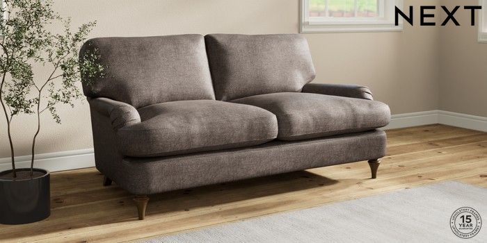 7.0.3 Buy Sadie Deep Relaxed Sit 2 Seater Sofa Plush Chenille Mink Brown High Slim Turned - Mid from the Next UK online shop Click here to use our accessible website