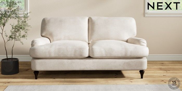 6.12.1 Buy Sadie Deep Relaxed Sit 2 Seater Sofa Plush Chenille Oyster High Slim Turned - Dark from the Next UK online shop Click here to use our accessible website