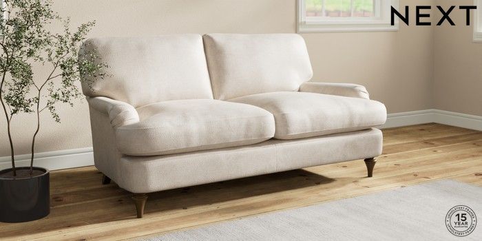 7.0.3 Buy Sadie Deep Relaxed Sit 2 Seater Sofa Plush Chenille Oyster High Slim Turned - Mid from the Next UK online shop Click here to use our accessible website