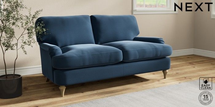 7.0.3 Buy Sadie Deep Relaxed Sit 2 Seater Sofa Plush Velvet Easy Clean Airforce Blue High Slim Turned - Light from the Next UK online shop Click here to use our accessible website