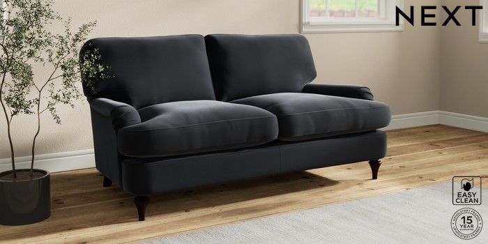 7.0.3 Buy Sadie Deep Relaxed Sit 2 Seater Sofa Plush Velvet Easy Clean Charcoal Grey High Slim Turned - Dark from the Next UK online shop Click here to use our accessible website