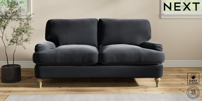 6.12.1 Buy Sadie Deep Relaxed Sit 2 Seater Sofa Plush Velvet Easy Clean Charcoal Grey High Slim Turned - Light from the Next UK online shop Click here to use our accessible website