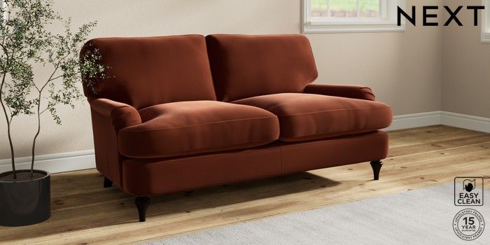 7.0.3 Buy Sadie Deep Relaxed Sit 2 Seater Sofa Plush Velvet Easy Clean Ginger Orange High Slim Turned - Dark from the Next UK online shop Click here to use our accessible website