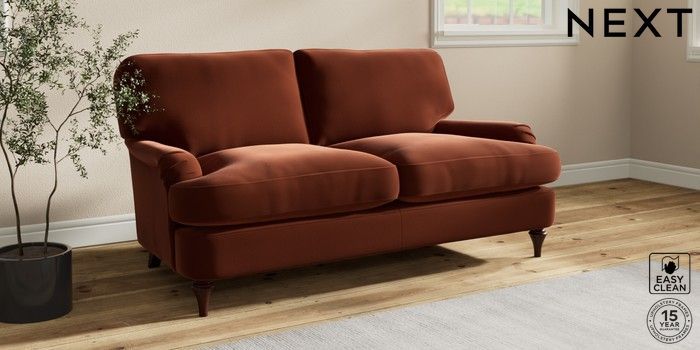 7.0.3 Buy Sadie Deep Relaxed Sit 2 Seater Sofa Plush Velvet Easy Clean Ginger Orange High Slim Turned - Dark Brown from the Next UK online shop Click here to use our accessible website