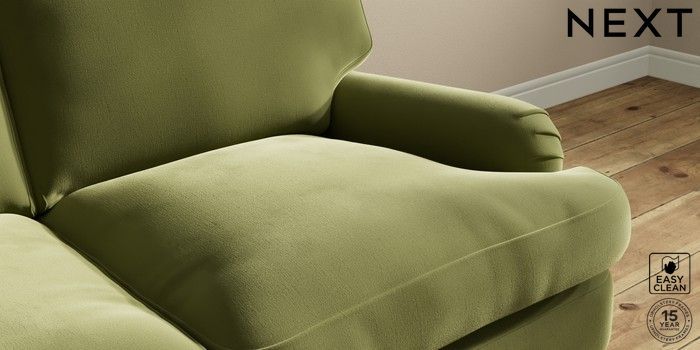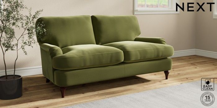 7.0.3 Buy Sadie Deep Relaxed Sit 2 Seater Sofa Plush Velvet Easy Clean Mid Olive Green High Slim Turned - Dark Brown from the Next UK online shop Click here to use our accessible website