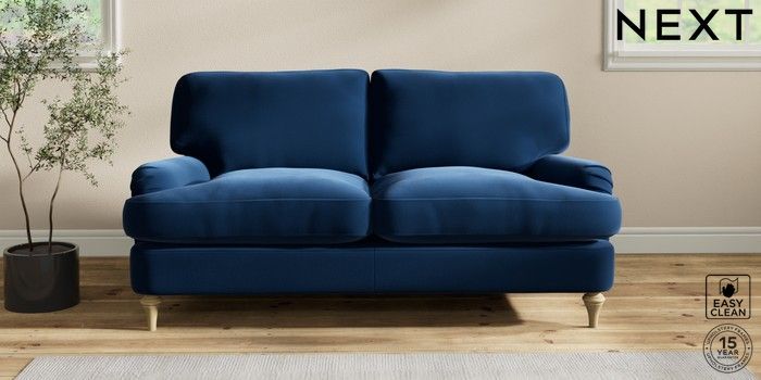 6.12.1 Buy Sadie Deep Relaxed Sit 2 Seater Sofa Plush Velvet Easy Clean Navy Blue High Slim Turned - Light from the Next UK online shop Click here to use our accessible website