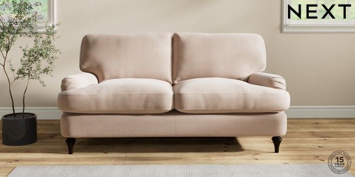 6.12.1 Buy Sadie Deep Relaxed Sit 2 Seater Sofa Relaxed Linen Look Mid Natural High Slim Turned - Dark from the Next UK online shop Click here to use our accessible website