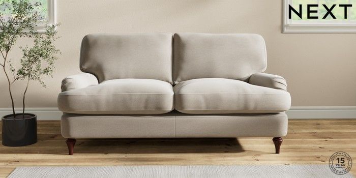 6.12.1 Buy Sadie Deep Relaxed Sit 2 Seater Sofa Ripple Chenille Light Natural High Slim Turned - Dark Brown from the Next UK online shop Click here to use our accessible website