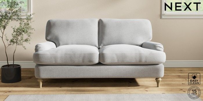 6.12.1 Buy Sadie Deep Relaxed Sit 2 Seater Sofa Tweedy Blend Easy Clean Light Silver Grey High Slim Turned - Light from the Next UK online shop Click here to use our accessible website