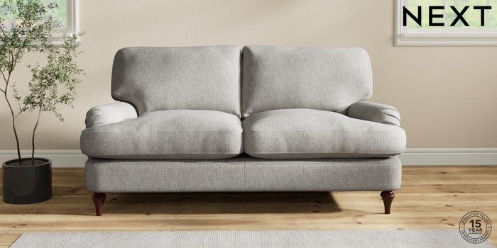 6.12.1 Buy Sadie Deep Relaxed Sit 2 Seater Sofa Tweedy Chenille Mid Grey High Slim Turned - Dark Brown from the Next UK online shop Click here to use our accessible website