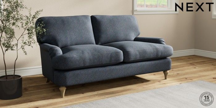 7.0.3 Buy Sadie Deep Relaxed Sit 2 Seater Sofa Tweedy Chenille Navy Blue High Slim Turned - Light from the Next UK online shop Click here to use our accessible website