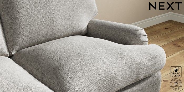 7.0.3 Buy Sadie Deep Relaxed Sit 2 Seater Sofa Woven Chenille Easy Clean Light Grey High Slim Turned - Dark Brown from the Next UK online shop Click here to use our accessible website