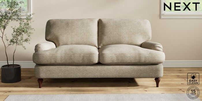6.12.1 Buy Sadie Deep Relaxed Sit 2 Seater Sofa Woven Chenille Easy Clean Mid Natural High Slim Turned - Dark Brown from the Next UK online shop Click here to use our accessible website