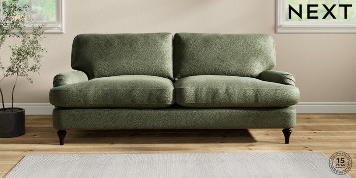 6.12.1 Buy Sadie Deep Relaxed Sit 3 Seater Sofa Boucle Chenille Dark Moss Green High Slim Turned - Dark from the Next UK online shop Click here to use our accessible website