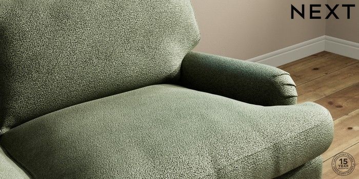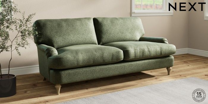 7.0.3 Buy Sadie Deep Relaxed Sit 3 Seater Sofa Boucle Chenille Dark Moss Green High Slim Turned - Light from the Next UK online shop Click here to use our accessible website