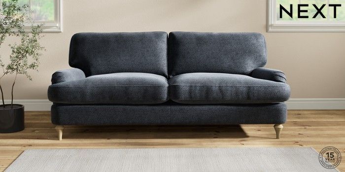 6.12.1 Buy Sadie Deep Relaxed Sit 3 Seater Sofa Boucle Chenille Dark Slate Blue High Slim Turned - Light from the Next UK online shop Click here to use our accessible website