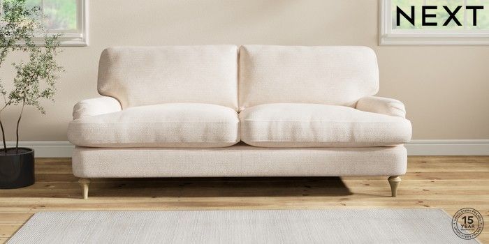 6.12.1 Buy Sadie Deep Relaxed Sit 3 Seater Sofa Boucle Chenille Oyster High Slim Turned - Light from the Next UK online shop Click here to use our accessible website